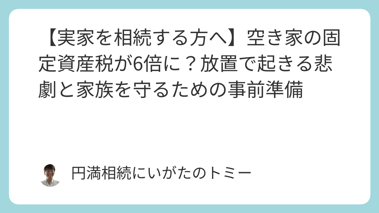 この記事は、空き家と固定資産税に関する一般的な情報提供を目的としています。個別の事案に対する法的なアドバイスや税務判断を行うものではありません。具体的な対策にあたっては、必ず不動産会社、司法書士、税理士などの専門家にご相談ください。