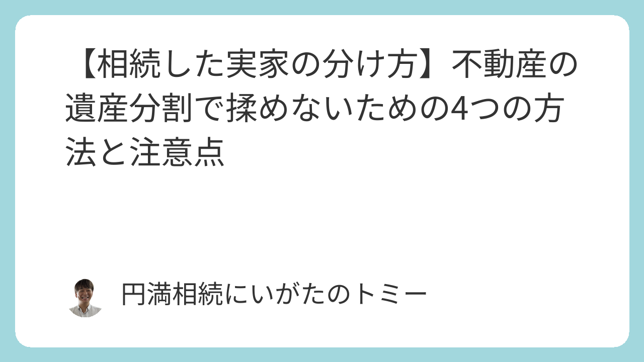 この記事は、不動産の遺産分割に関する一般的な情報提供を目的としています。特定のケースに対する法的なアドバイスや税務判断を行うものではありません。実際の分割協議や手続きにあたっては、必ず弁護士、司法書士、税理士などの専門家にご相談ください。