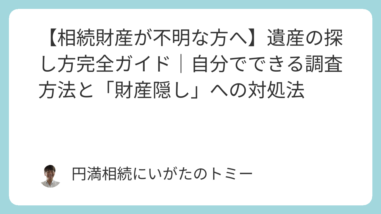 この記事は、相続財産の調査に関する一般的な情報提供を目的としています。個別の事案に対する法的なアドバイスを行うものではありません。具体的な調査や法的手続きにあたっては、必ず弁護士、司法書士、税理士などの専門家にご相談ください。