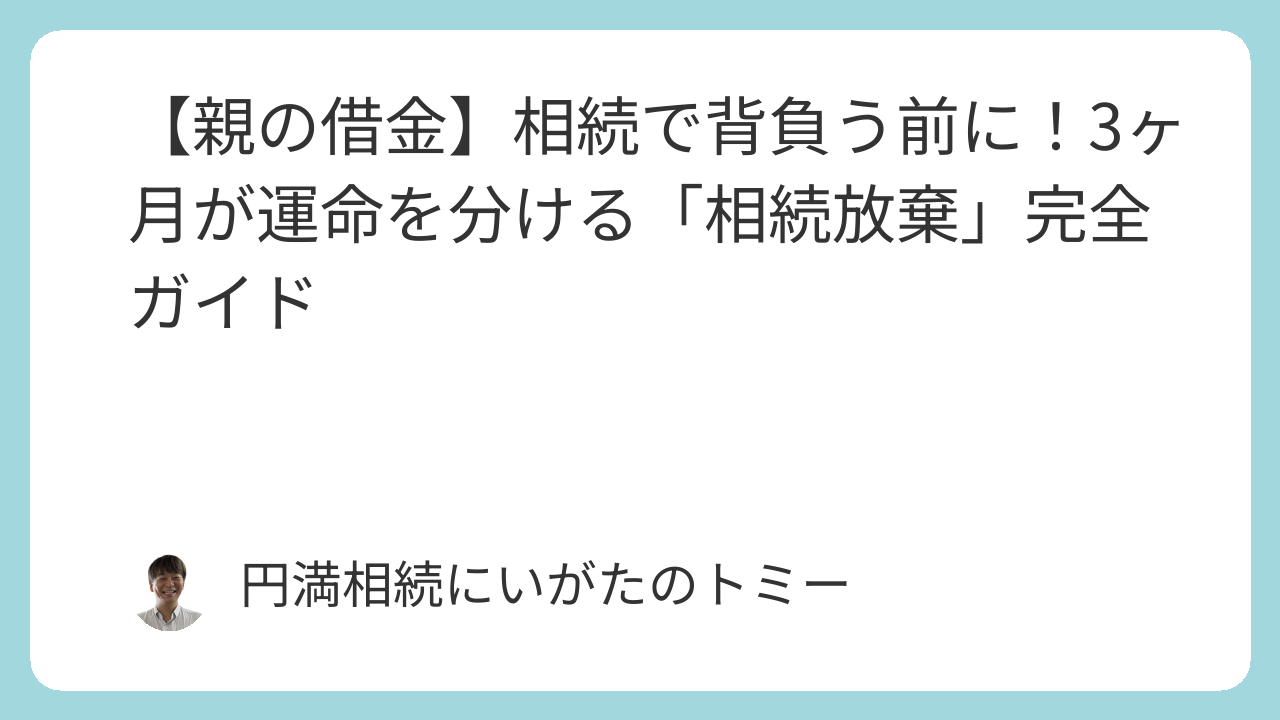 この記事は、相続における負債への対処に関する一般的な情報提供を目的としています。個別の事案に対する法的なアドバイスを行うものではありません。具体的な手続きにあたっては、必ず弁護士や司法書士などの専門家にご相談ください。
