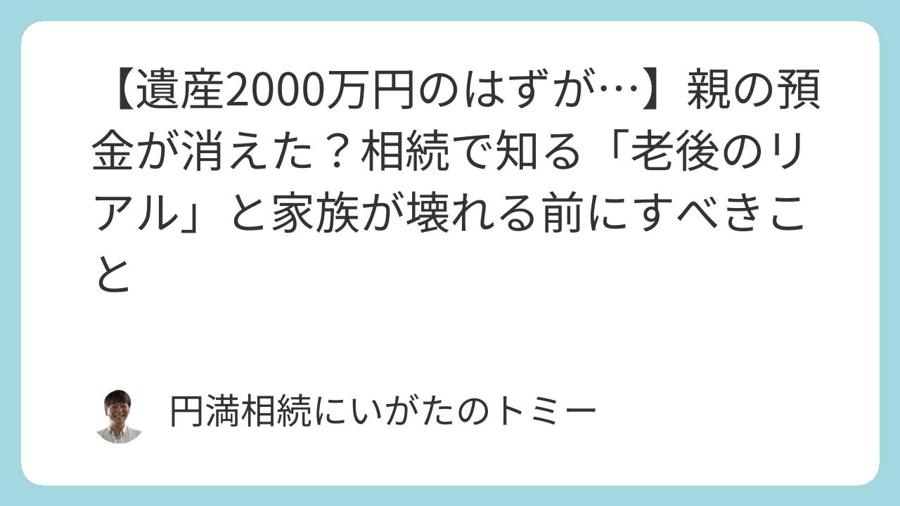 - 「2,000万円あったはず」の幻想:なぜ子どもの期待は裏切られるのか